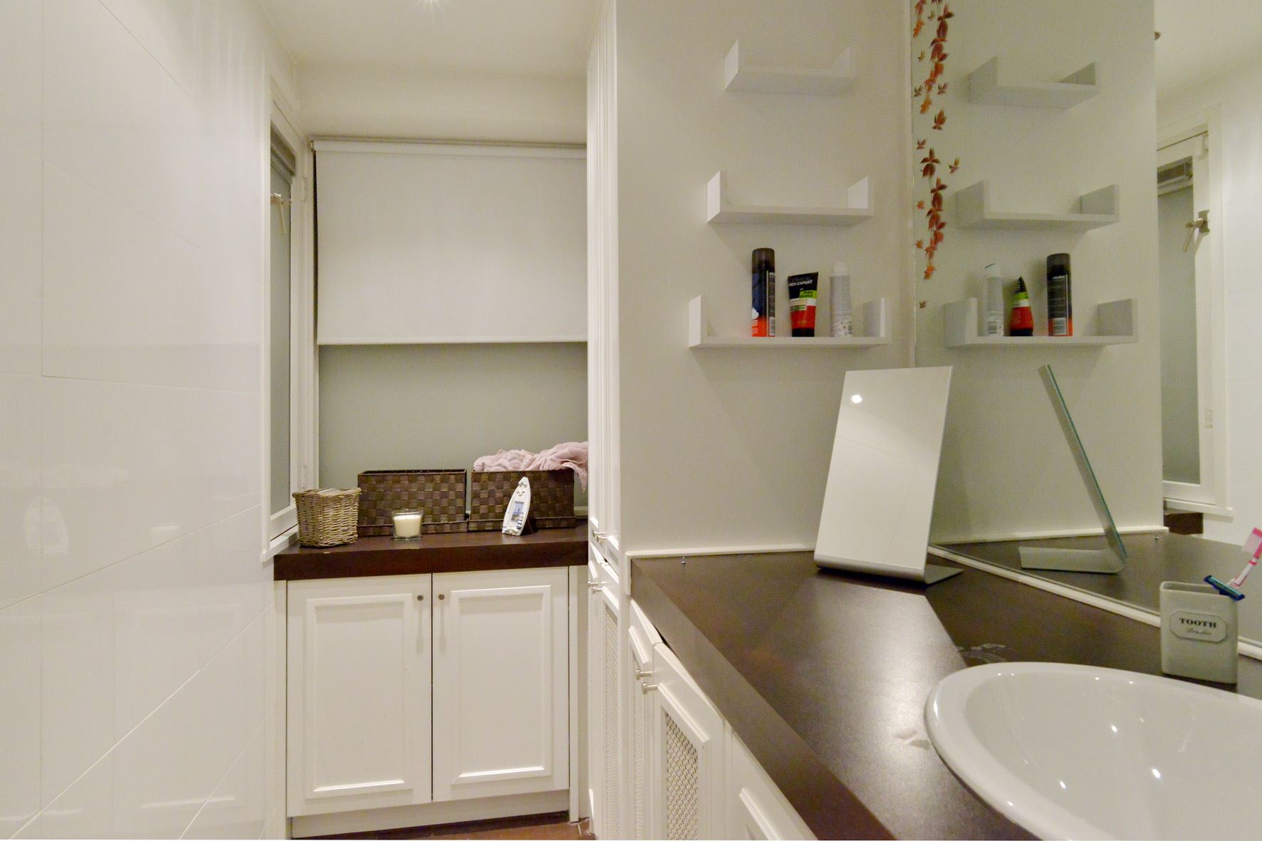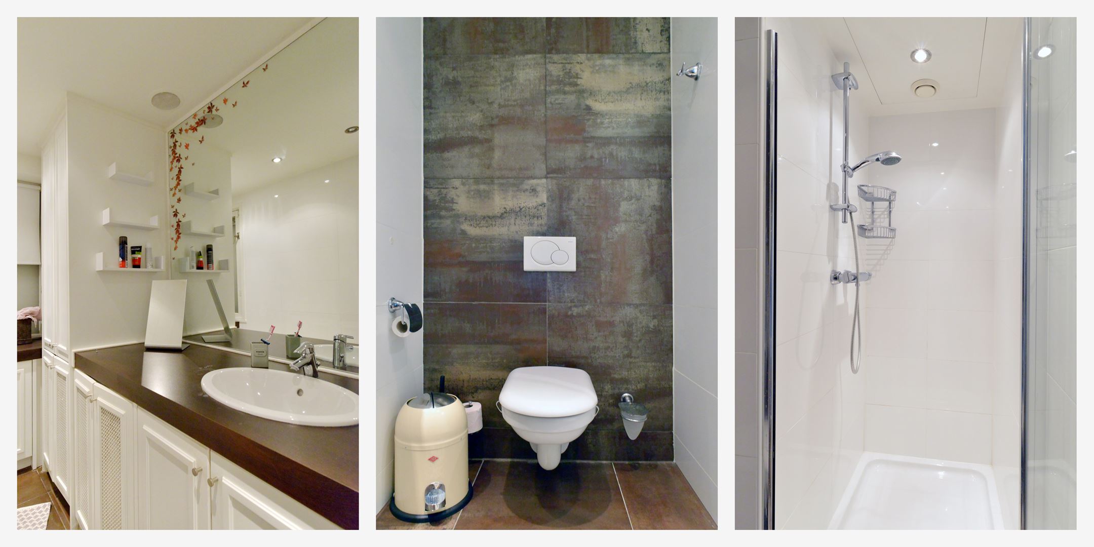 * Moderne badkamer 3.09 x 1.54 met toiletruimte, douchecabine, wastafelmeubel, wasmachine-aansluiting , opstelling