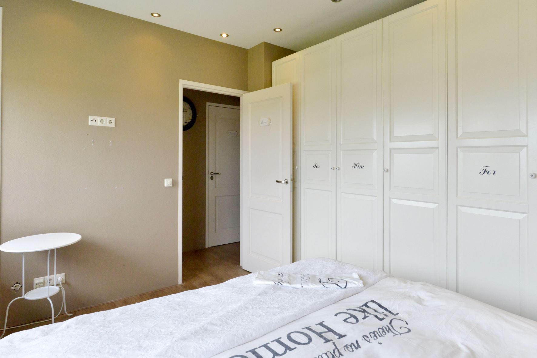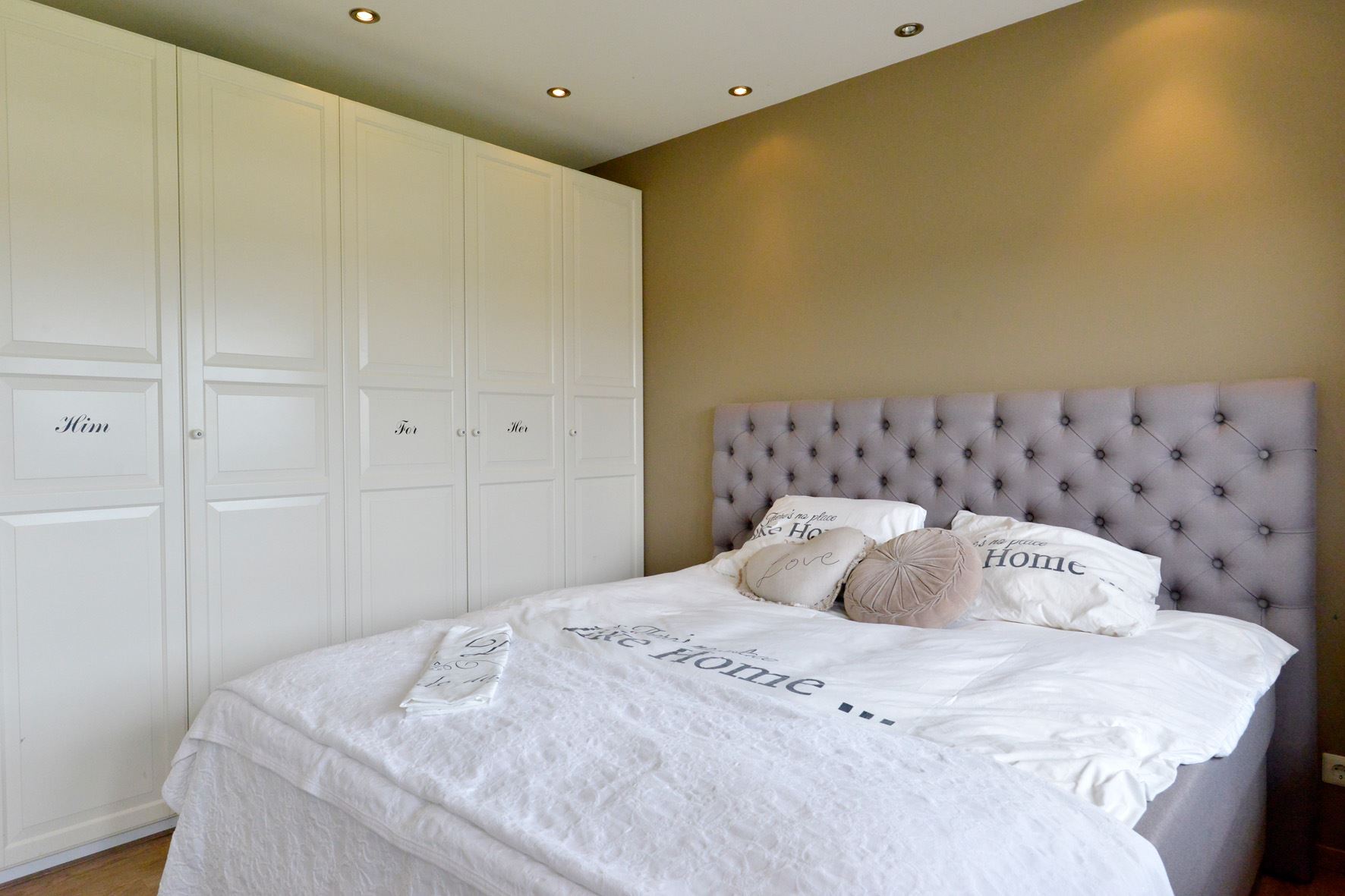 * Royale slaapkamer 3.59 x 3.45 met een laminaatvloer en kledingkasten.