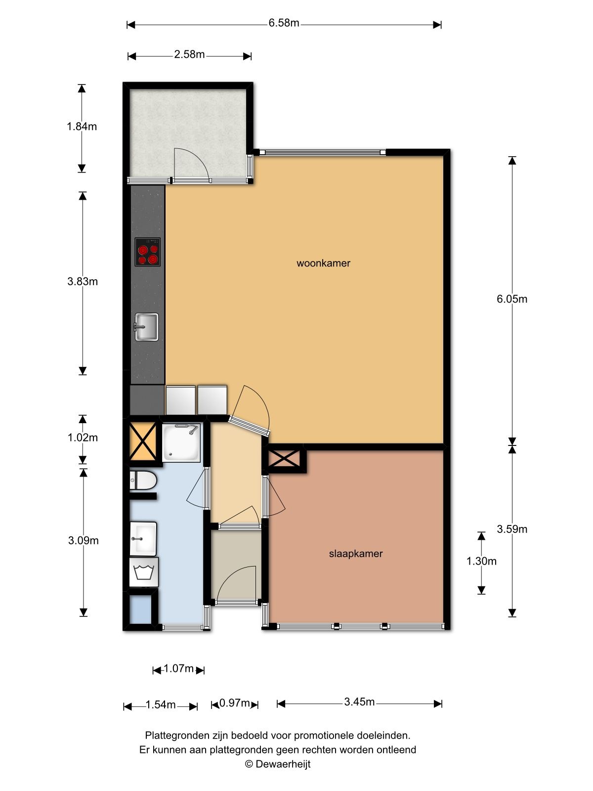 * Balkon 2.58 x 1.84 gelegen op het westen.